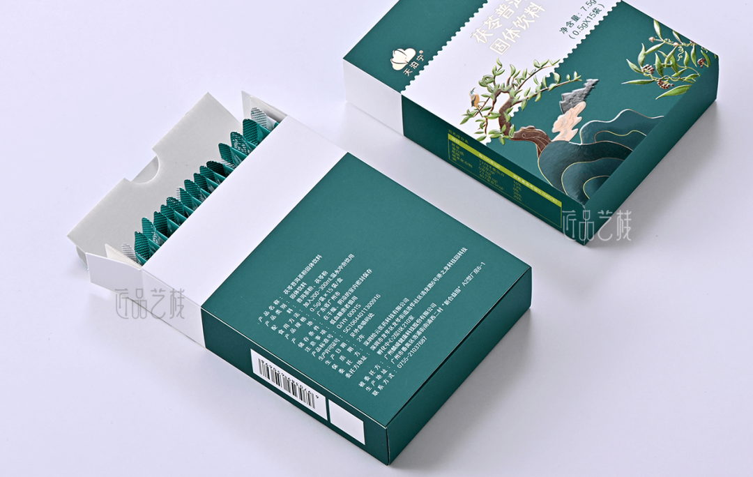 如:與天泊寧品牌(生物科技優(yōu)秀企業(yè))從設(shè)計到印刷整體完成的固態(tài)飲料產(chǎn)品包裝盒案例: