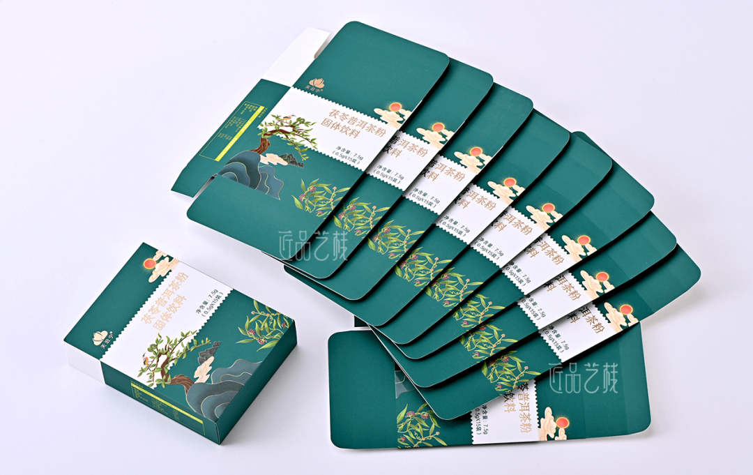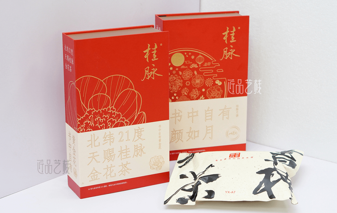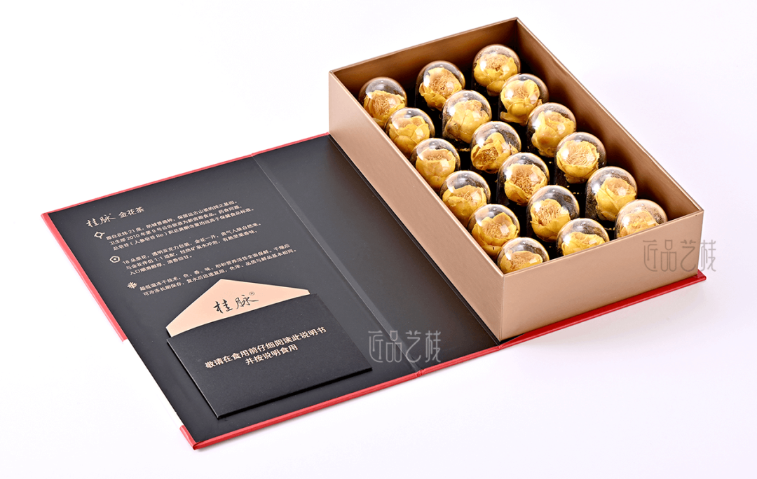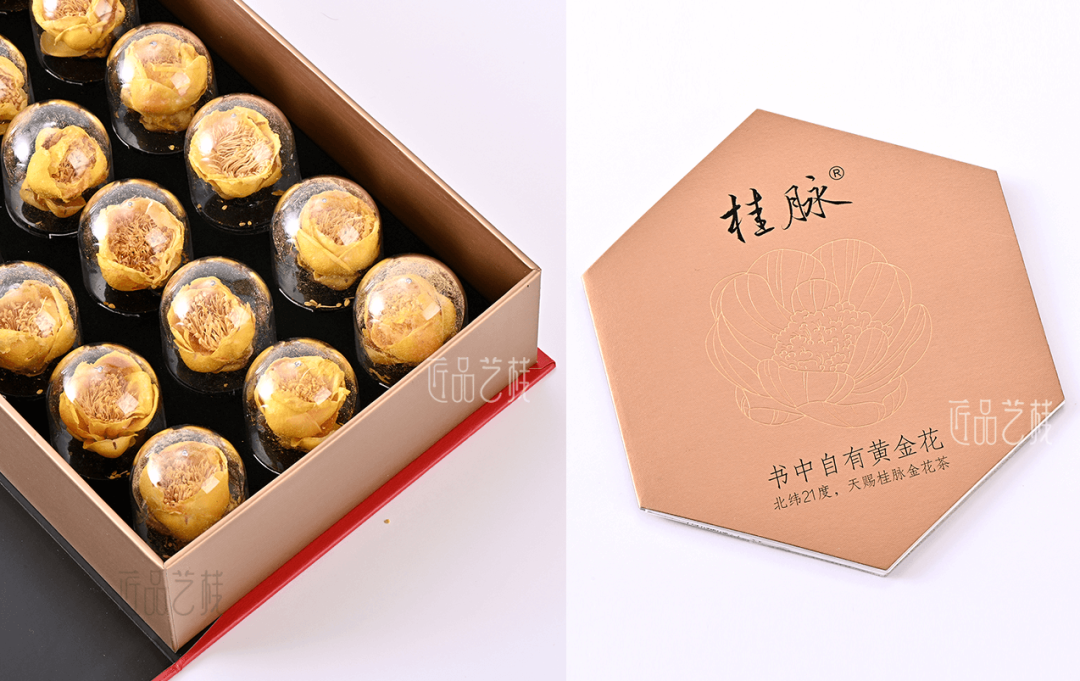 如:與桂脈金花茶(秋葉大叔直播間力推品牌)從設(shè)計到印刷整體完成的健康茶飲產(chǎn)品包裝盒案例: